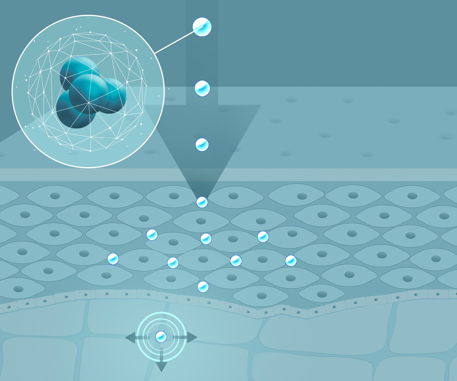 Инновационные технологии производства системы YUNA позволяют активным веществам свободно проникать в глубокие слои кожи за счет встраивания оболочки наносфер в стенки клеток, высвобождая активные элементы уже непосредственно внутри клетки.
